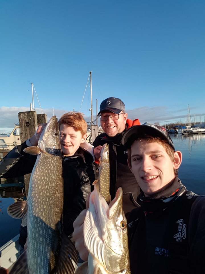 Owen van Boven met zijn maten en een triple hook up! Superleuke foto en mooie vissen mannen!