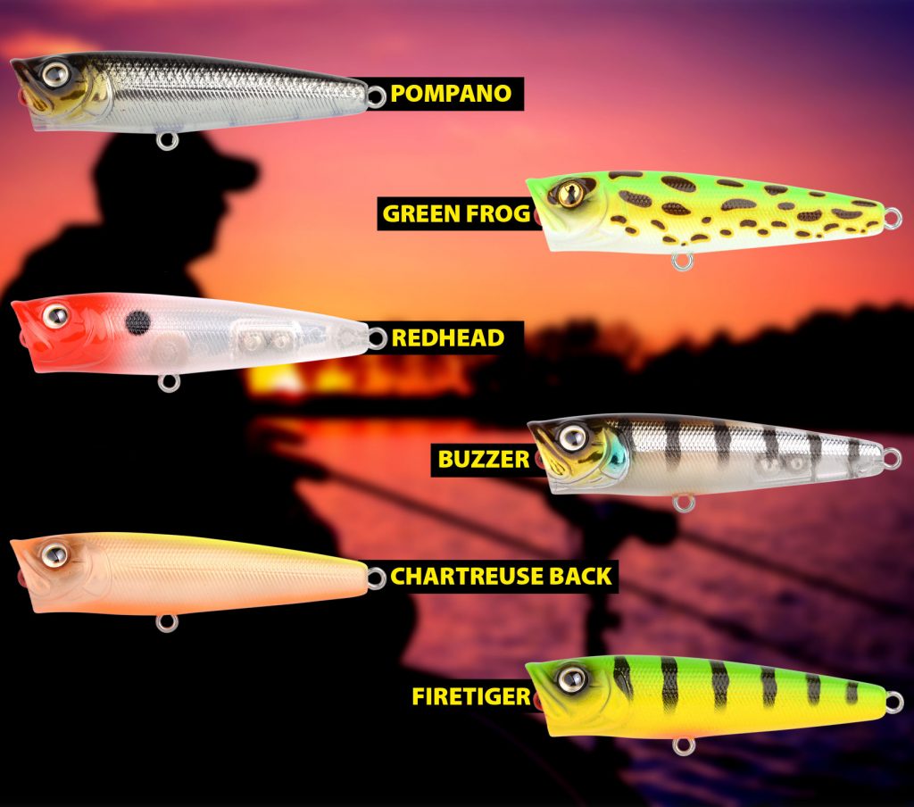 Dankzij de gewichtsverdeling gooit deze popper als een kogel. Ondanks het beperkte gewicht gooit deze popper nauwkeurig én ontzettend ver! Daarnaast zorgt de gewichtsverdeling ervoor dat je dit kunstaas zelfs bij ruig weer en flinke golfslag nog goed kunt vissen. De holle uitsnede in de neus is zo gevormd dat hij maximaal herrie veroorzaakt bij het binnenvissen. Het bellenspoor en de luid ploppende geluiden zullen door iedere roofvis opgemerkt worden. Bereid jezelf voor op hartverzakkende, spectaculaire aanbeten! De IKIRU Pop 65 is verkrijgbaar in 6 catchy kleuren en weegt slechts 6 gram, waardoor je hem uitstekend aan een lichte spinhengel kunt vissen.