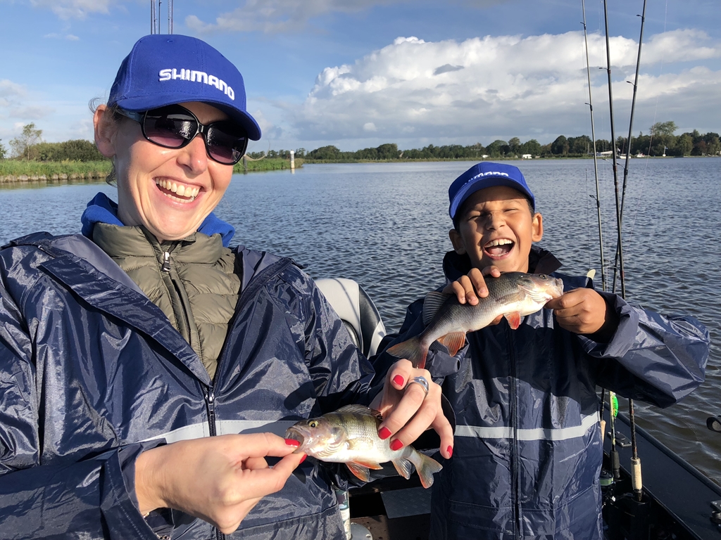 Er worden onmiddellijk verschillende vragen op me afgevuurd: “Mag ik met mijn hengels vissen?” “Mag ik met deze hengel vissen?” “Gaan we echt met die mooie boot vissen?” Prachtig, moeder vertelt dat Mark het de hele week nergens anders over gehad heeft. Snel even de regels aan boort uitleggen en daar gaan we.