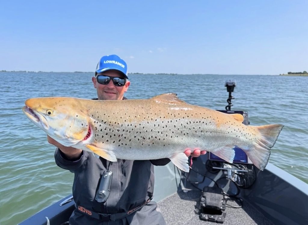 We zien het niet vaak dat er grote zalmachtigen in Nederland gevangen worden op zoet water. Toch gebeurt het steeds vaker. Zo ving Simon Torenbeek deze week nog een zeeforel tijdens het vissen op snoekbaars en wist Jelle de Jong deze zomer een grote zeeforel te vangen. Twee keer is toevallig, maar deze week is er weer een grote zalmachtige gevangen op de Maas bij Lith.
