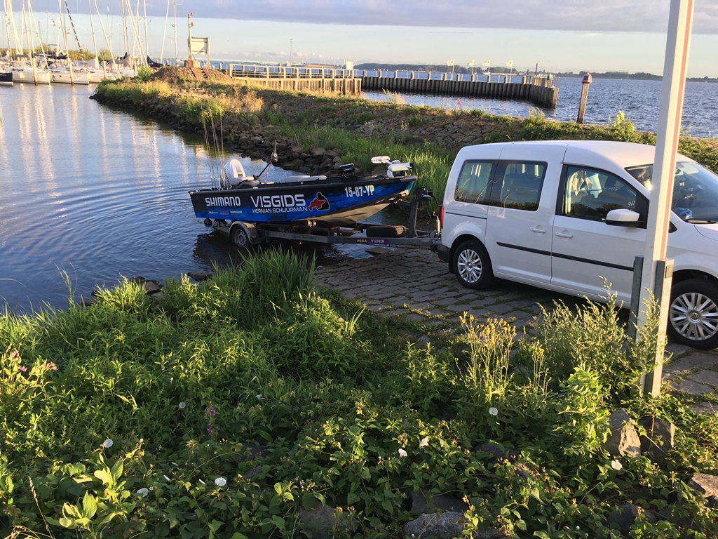 Ik heb afgesproken met mijn klanten Anton en Gerard bij de trailerhelling in Willemstad. De mannen zijn mooi op tijd. Door de droogte en daardoor lage aanvoer van de rivieren staat het water heel laag. Gaan ze ook nog eens de Haringvlietsluizen open zetten zodat al het kostbare zoete water straks de zee in stroomt. Ik snap er niks meer van.