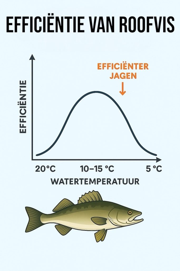 Zodra de herfst aanbreekt en de temperatuur daalt naar zo’n 10 tot 15 graden, komt hun metabolisme in een ideale zone. Roofvissen kunnen dan energiezuiniger bewegen en efficiënter jagen. Ze verbranden minder bij iedere uitval en het rendement van hun inspanning neemt toe. Dit maakt de herfst biologisch gezien dé periode waarin ze maximaal kunnen profiteren van hun prooivis.