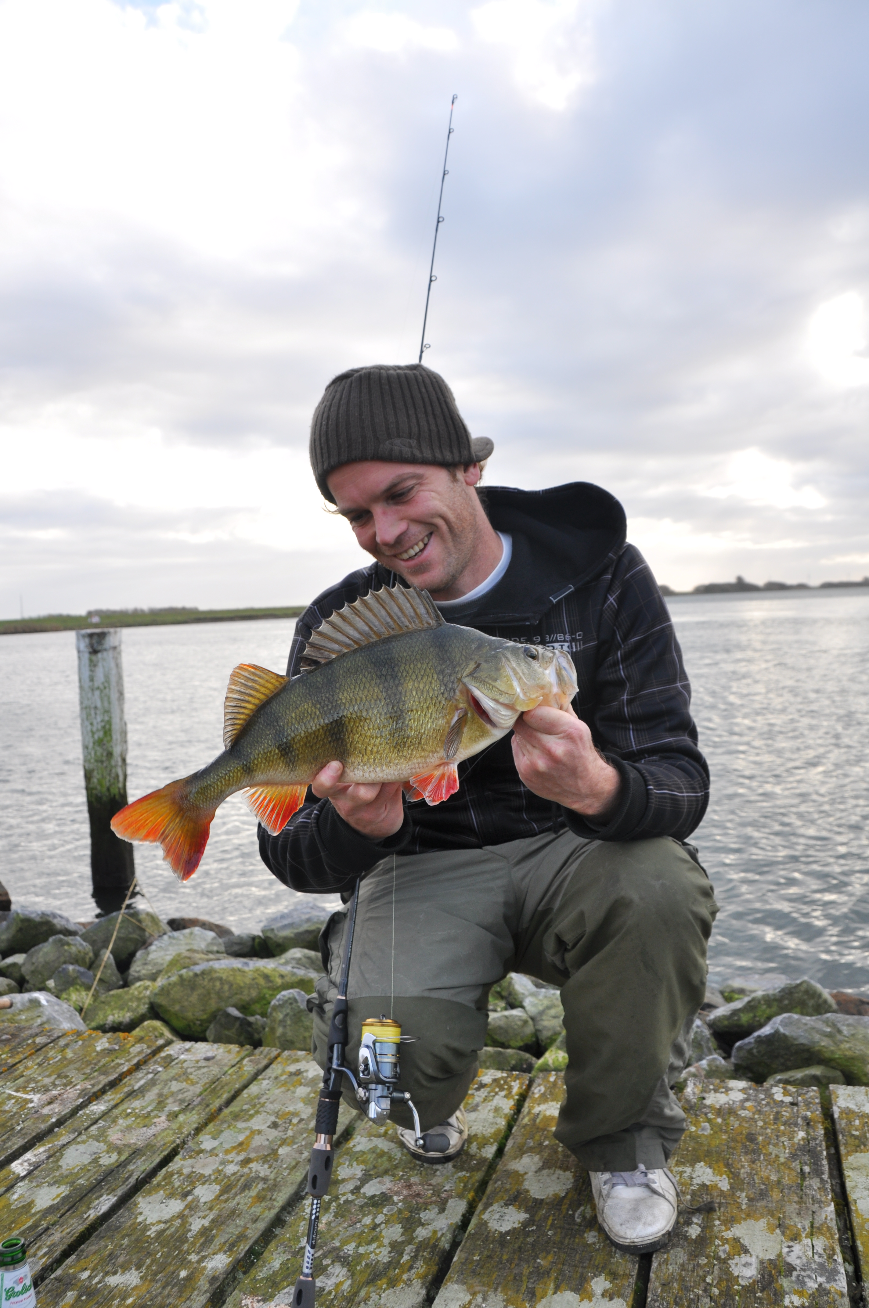 Niks die ochtend doet vermoeden dat we iets bijzonders gaan meemaken, toch staan Martin en ik te trappelen. Het is een haventje waar grote baars zeker tot de mogelijkheden behoort. Natuurlijk de gezonde hartkloppingen, maar net zo goed zijn we realistisch. Hoe vaak zijn we niet van een koude kermis thuis gekomen?