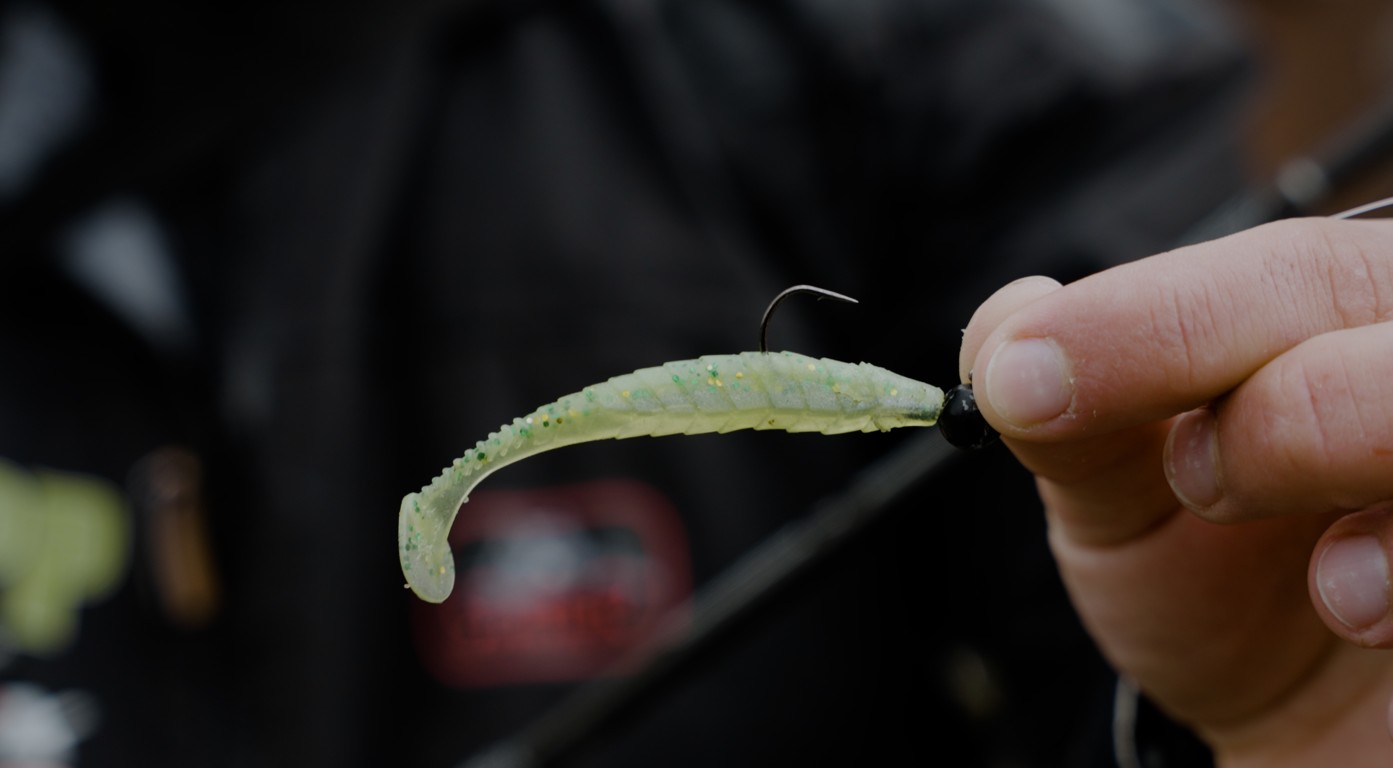 De eerste stek was een brug met water in het verlengde van die stormachtige wind. Ik zal eerlijk zeggen dat ik op dat moment alles in duigen zag vallen. Tegen beter weten een licht 5 grams loodkopje met de Snatcher van Frapp. Met frisse tegenzin zwiepte ik hem onder de brug en zoals verwacht nul feeling tijdens het binnenvissen. En dan toch! Een tik op de hengel, met als gevolg een snoekbaars.