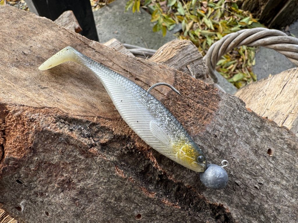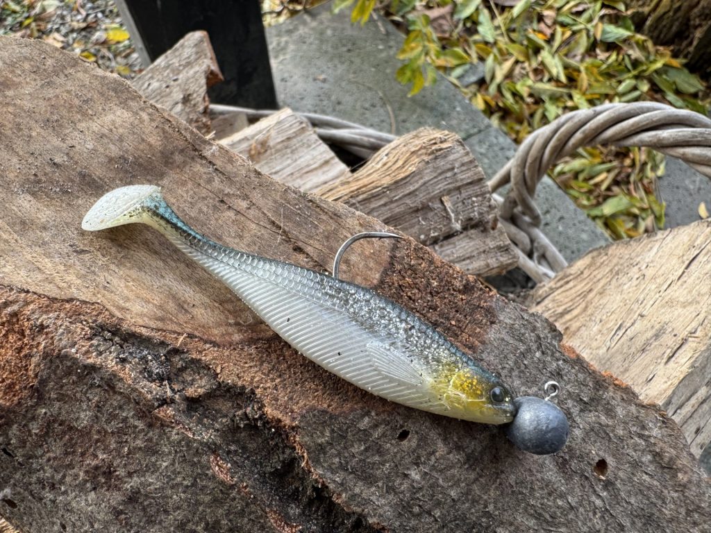 Deze haak zit goed. Een maatje kleiner had ook gemogen, maar zo wordt de actie van de shad niet belemmerd én heb je goede inhaking.