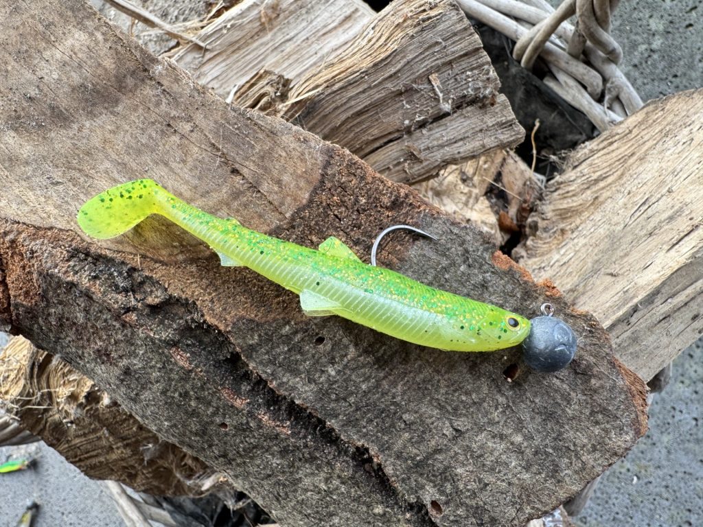 Nog een tip: zorg ervoor dat je een vinger over hebt tussen de haakpunt en de shad. Zo weet je dat je goed haak kunt zetten.