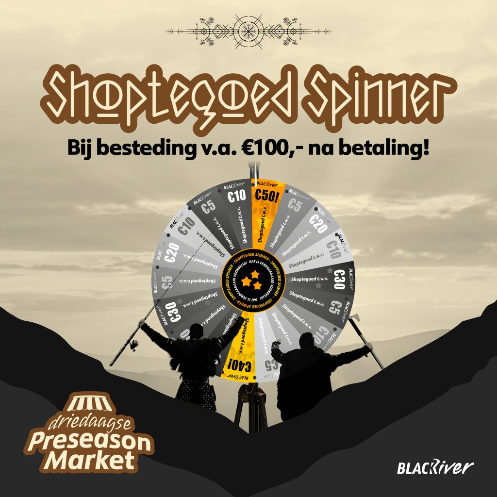 Ook onze Shoptegoed Spinner staat tijdens de Preseason Market weer in de winkel. Bij besteding vanaf €100,- kun je na het afrekenen een draai aan de Spinner geven voor gratis Shoptegoed!