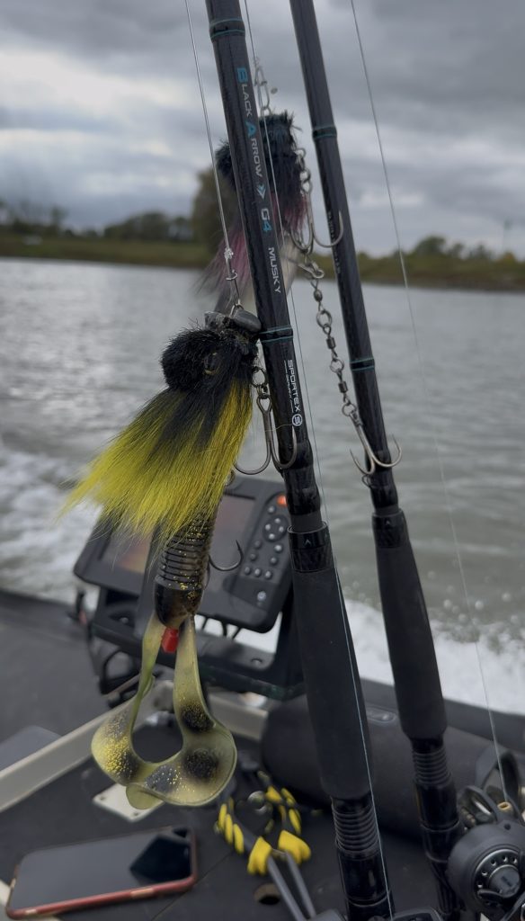 Inmiddels weten we beiden goed hoe we het moeten aanpakken met riviersnoeken. Dus gewapend met onze Black Arrow G4 Musky hengels en flinke lappen kunstaas gingen we op pad. Het is een spannende en visuele visserij, want je maakt hele korte worpen net achter kribjes. Bijna alle aanbeten zijn op zicht en de snoeken kunnen heel groot zijn. Korte, heftige drills recht onder de boot zijn ook nog eens een dikke kers op een al mogelijk hele dikke taart!