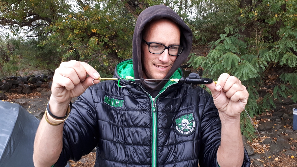 Bij hoogwater zoekt het natuurlijk voedsel hun heil ver weg van de razende hoofdstroom, dus wordt de aasvis ‘freestyle’ afgespannen in de oeverzone met behulp van een breeklijn montage.
