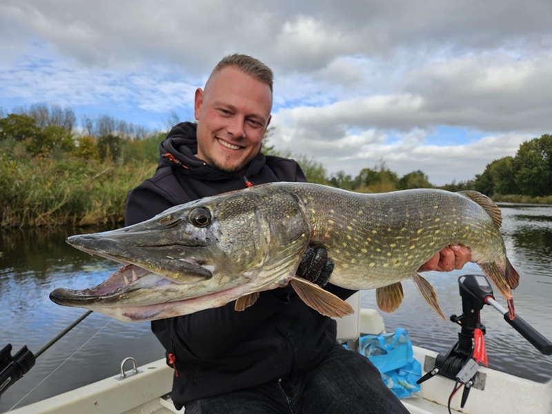 Jorne van den Dool: “Het is nog geen krokodil, maar dit was mijn eerste dood aas snoek van dit najaar. Hier in de polder zijn de vangsten nog niet geweldig, het mag wel wat kouder worden.” Geen monster, maar wel weer fraaie snoek uit dat unieke poldergebied.