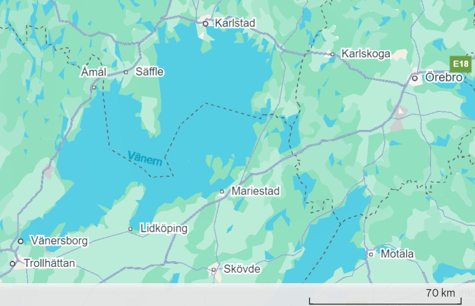 De betreffende auto hebben we keihard nodig om bij Mariestad te komen, een klein plaatsje aan de oevers van het gigantische Vänern. Zoek het op met Google Maps en je scherm wordt blauw. Een oppervlak van ca. 5.650 km², ter vergelijking: vijfmaal het IJsselmeer. Het op twee na grootste zoetwatermeer van Europa… Snoek? Jazeker en groot ook!