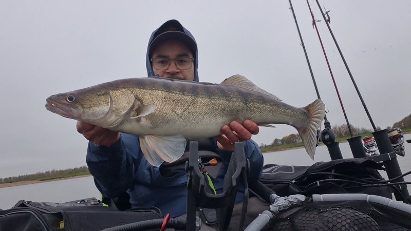 Johnny Koekerits: “Mooie snoekbaars vanuit de bellyboot.” Ahhhh heerlijk, dat moet hartverwarmend zijn geweest in die kou!