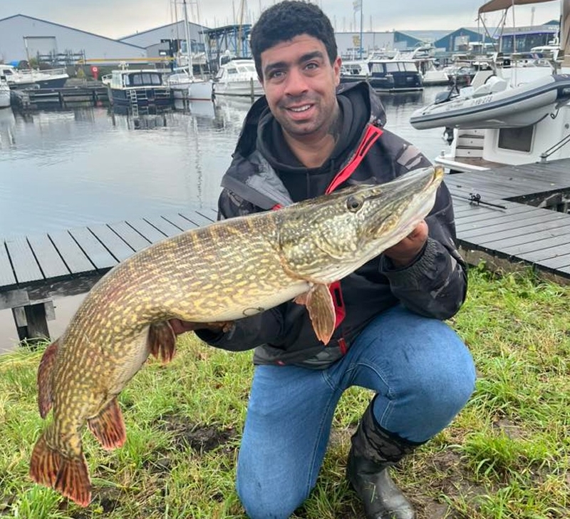 Nouri Dml: “Deze dikke knoeperd van 93 cm mogen vangen, nadat we het doodaas binnengehaald hadden en opgeruimd hadden zagen we deze snoek jagen in de kant. Snel mijn hengel erbij met kunstaas, één worp met de Savage Gear RTF Roach aan de onderlijn en het was hangen! Verder hadden we een topdag met 5 snoeken!” Lekker bezig Nouri, bijzonder hoe opeens die jachtmodus aan gaat!