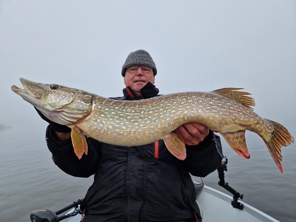 Hessel Wijbenga: “Deze mooie 91 cm snoekbaars kon de pelagic shad niet weerstaan tijdens een vroege mistige ochtendsessie.” Beulen in die kou en mist en dan zo’n bak vangen! Vakwerk Hessel!