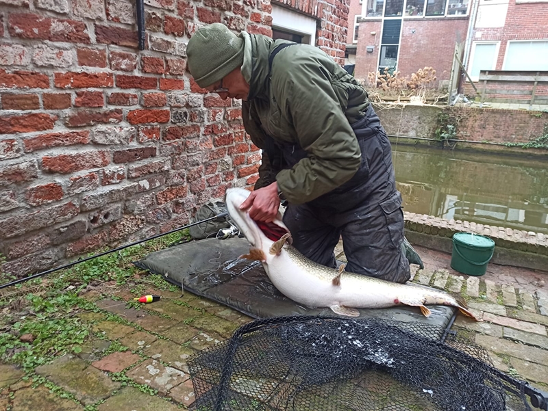 Alain Luijten: “Een aanbeet was weer genoeg, moddervette snoek van 108 cm op een dikke dooie voorn.” Wat een kolos Alain… Mooi die havenvisserij!