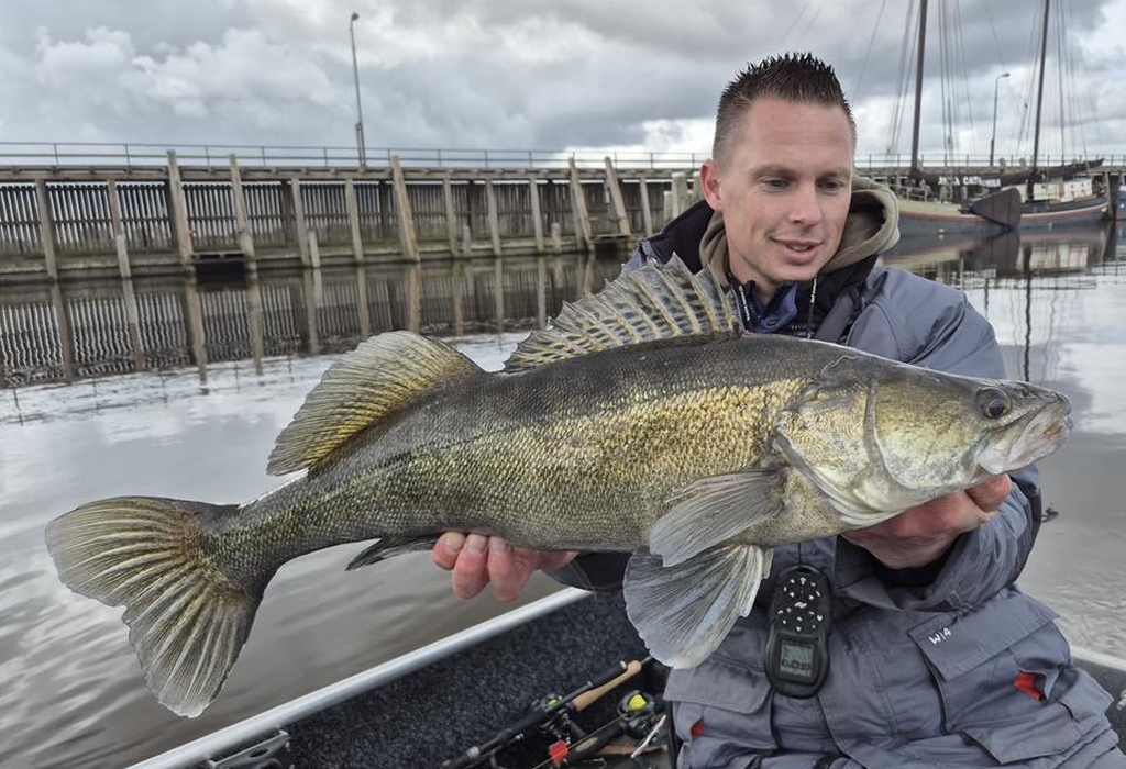 Peter Seinen: “Mooie negentiger op een Spro shad, werpend vissend. Op het laatst stukje vlak bij de boot pakt deze dame mijn shad.” Wauw, ook nog eens op zicht zo te horen! Dat gebeurt zelden bij snoekbaars! Super gaaf Peter!