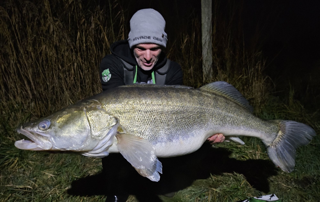 Eenmaal in de boot moet ik met mijn ogen knipperen, een snoekbaars met zo’n beetje de omvang van een karper. Zo hoog en compact gebouwd en dan toch bizar fors in lengte. 95 cm en 12,2 kilo! Eens te meer doet het me denken aan een ondersoort. De Sander lucioperca die hier op dit afgesloten watersysteem een eigen loopje heeft genomen met een soort mini-evolutie.