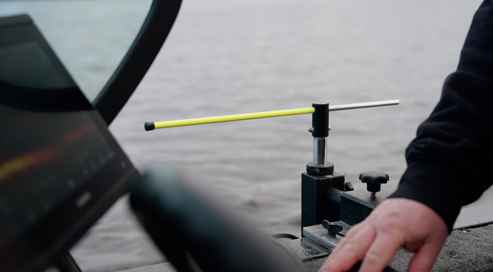 De wijzer van de transducerstang, dit tezamen met de werpafstand is jouw mikpunt.