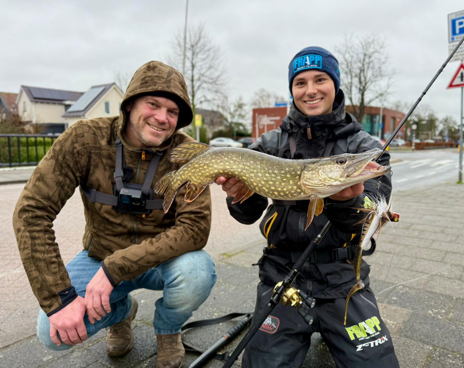 Afgelopen vrijdag dacht ik dat met Tim Kunst van Frapp en Zetrix te gaan doen. Dat werd toch anders. Tim vist ook graag vanaf de kant op snoek, maar zoekt meer de sloten die in verbinding staan met groot water. In plaats van struinen werd het het meer uitkammen van stekken waar wel eens grote exemplaren zouden kunnen liggen. Tof om te zien dat ieder zo zijn voorkeuren heeft en het mooiste van alles, Tim zijn plan werkte! De laatste worp mensen… Een gigasnoek!