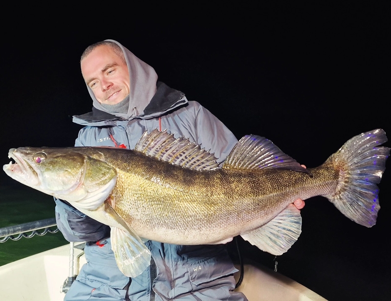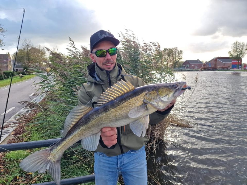 Jeroen Kuitert: “Wind op de kant is vis in de hand zeggen ze. En dat bleek maar weer zo te zijn, heerlijk de polder gemalen wezen afstruinen en dan van deze mooie snoekbaarzen mogen vangen zoals deze mooie van 75 cm.” Wat een kleuren heeft deze zander. Jeroen en ook flink aan de maat. Niets meer aan doen zeggen wij.