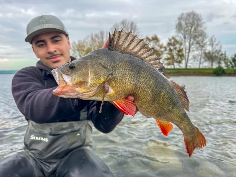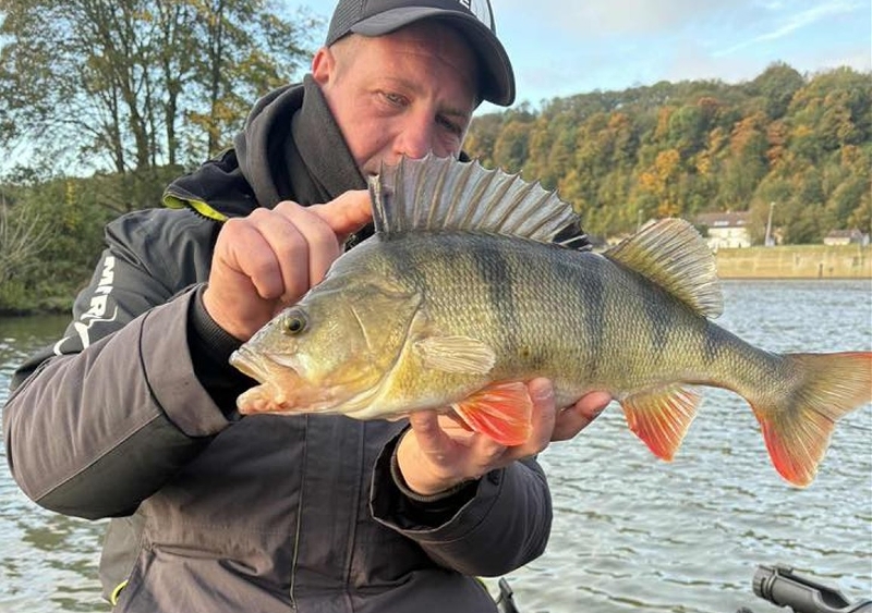 Gert Roosen: “Mooie baars, gevangen op een 12 cm shad. Ze beginnen gretig te worden!” Dan hebben ze er zin in inderdaad! Mooie kleuren deze vis!