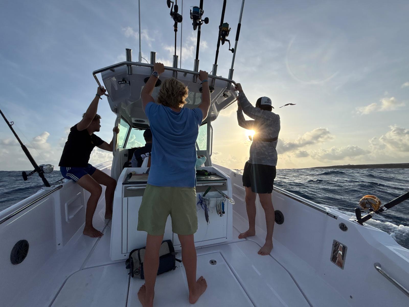 Beukend tegen de golven in op de Axopar met 2×2 200 Pk van Bonaire Yacht Charters.