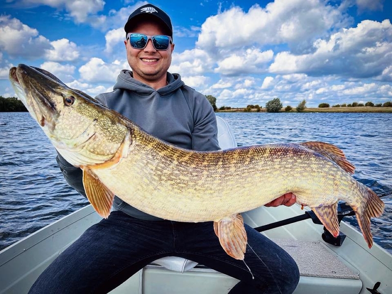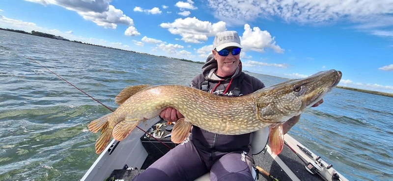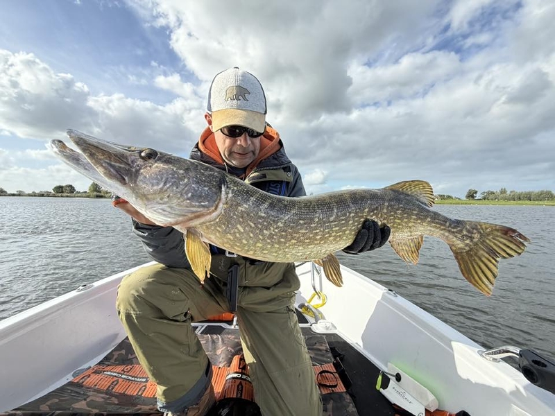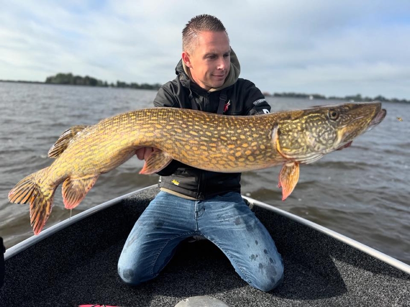 Wiebe Jouke Elzinga: “Prachtige mooie metersnoek tijdens het trollen met groot rubber, het blijft mooi werk.” Dat gaat nooit vervelen Wiebe! Wat een leipe print heeft deze snoek!