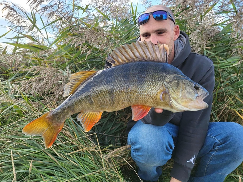 Bert Pocquet: “Sterke rivierbaars, al mooi op gewicht dat belooft voor deze winter!” We kunnen er geen genoeg van krijgen Bert, die grote baarzen! Mooie kneiter!