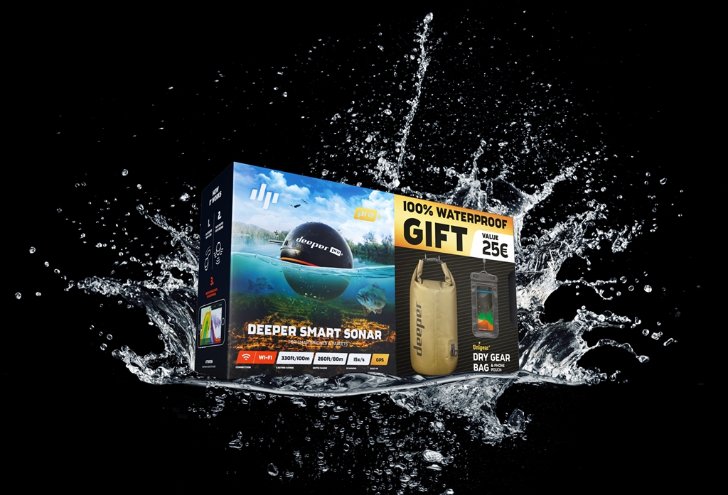 Zorg dat al je elektronica droog blijft, zelfs als het in het water valt of wanneer je verrast wordt door een fikse regenbui. Bestel nu een Deeper Sonar Pro+ en je krijgt er een GRATIS 100% waterdichte tas en telefoonhoes bij t.w.v. €25,- (zo lang de voorraad strekt). Het enige nadeel? Al je vrienden willen hun zooi bij jou in die tas, dus mondje dicht :-P. Klik HIER voor verkooppunten.