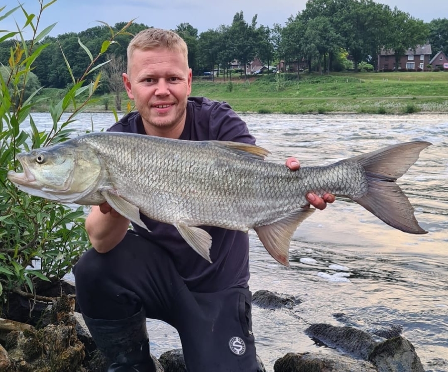 Kevin Odenthal: “Roofblei 84cm.” Tja Kevin, hoe kort jij in je beschrijving bent, zo uitvoerig zouden wij over de pracht van deze foto kunnen uitweiden. WAUW! Prachtig die rivier op de achtergrond die als een snelweg voorbij dendert. Toeval of niet, maar de sluitertijd van de camera enigszins vertraagd met als effect iets van vervaging van de stroming. Dat gooit er die snelheid in. In de weerspiegeling van het water een (vermoedelijk) ondergaande zon. En jawel, de blei mag er ook zijn. Loepjezuiver in beeld. Foto van de week!