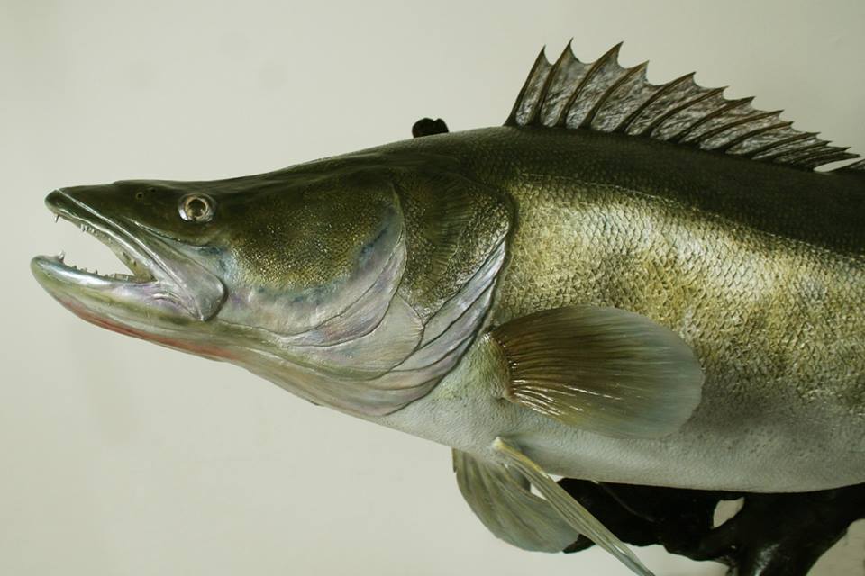 Een van zijn vele kunstwerken. Alsof je een echte zander in de ogen kijkt.