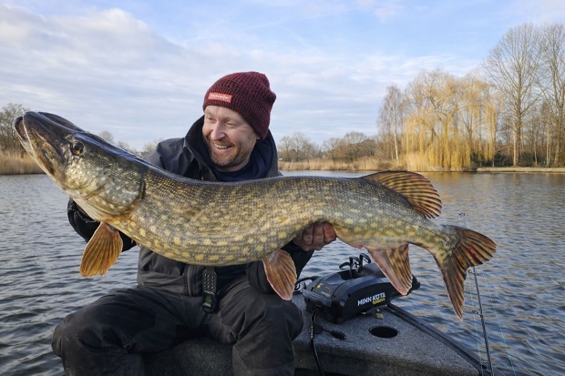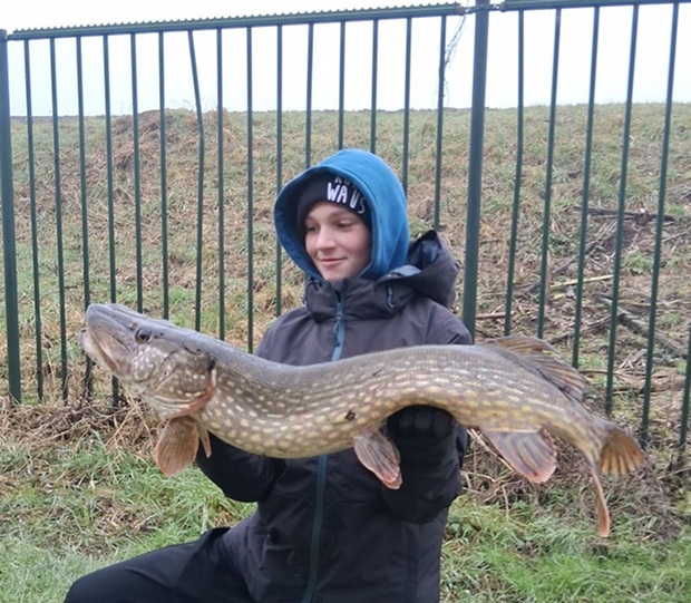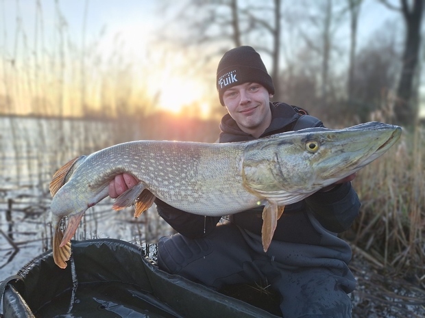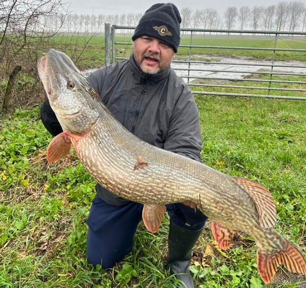 Alex Terharkel: “Mijn nieuwe pr. 116 cm van een zandput. Nooit verwacht dat we op een stormige dag met veel regen na 1,5 uur een mooie run kregen op de statische hengel. En dan zie je ineens een gigantische brede vis boven komen.” Wat een brute pike Alex! Gefeliciteerd met je pr! En dat door te strijden in die regen.