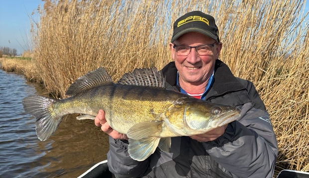Serge Sonneveldt: “Soms word je verrast tijdens het vissen op snoek; deze agressieve snoekbaars knalde vol op de Zander Pro van 16 cm.” Uitzonderlijk fraai getekende zander Serge! Pfff… Die goudtinten! Prachtig!