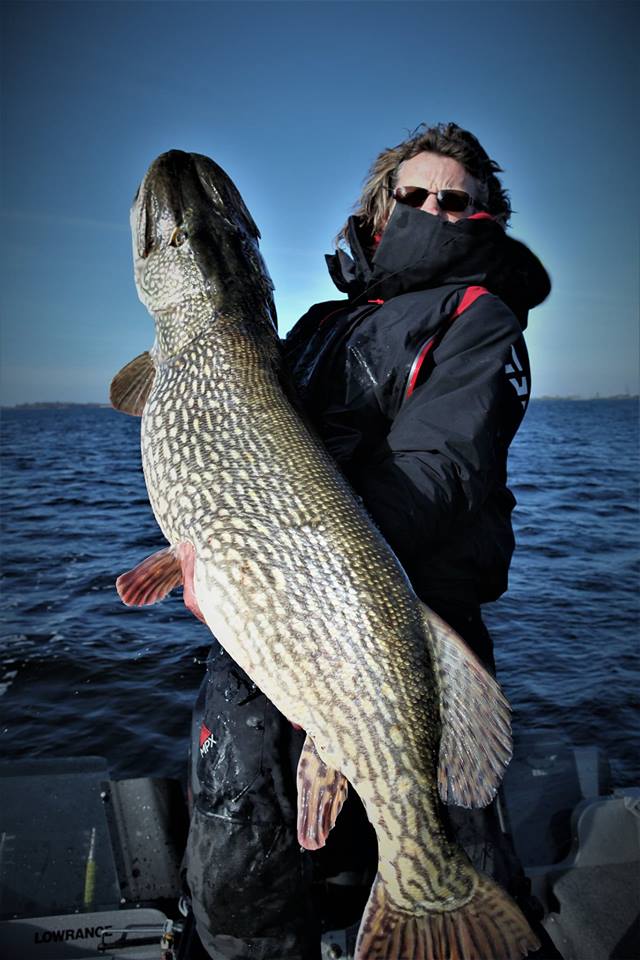 Werpend tegen een talud ving Marcel deze snoekbuffel die ruim over de 20 kg ging.
