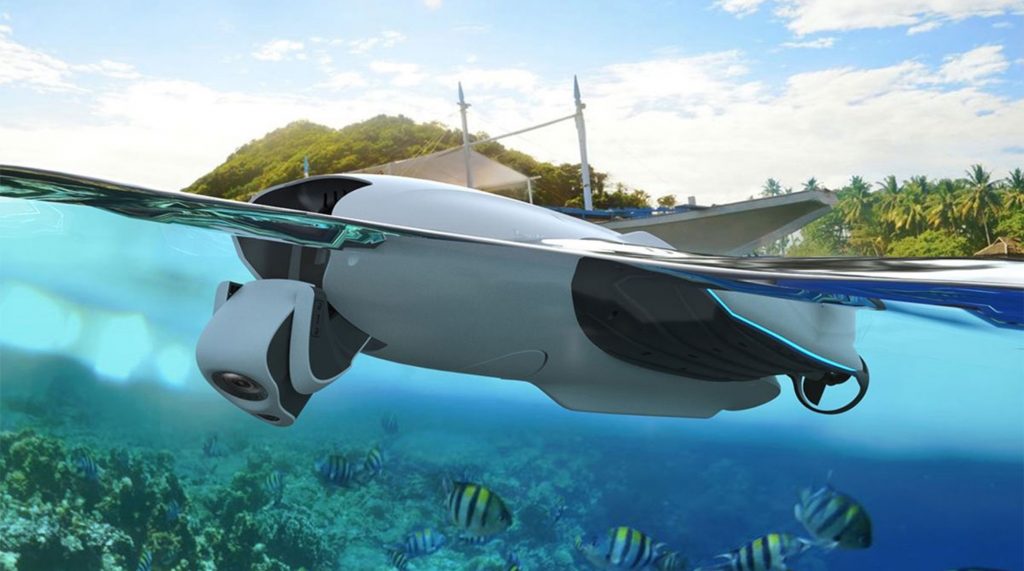 Nieuw van Technautic: De PowerVision PowerDolphin, niet bepaald een standaard drone! Met deze waterdrone kunnen Ultra HD video’s en hoge resolutie foto’s gemaakt worden. De op afstand bedienbare kantelbare camera kan 150° naar beneden en 70° naar boven kantelen. Dankzij de meegeleverde draadloze bediening is de PowerDolphin zelfs tot 1000 meter ver te bedienen en met alleen een smartphone tot 250 meter. Met de ingebouwde GPS kan de PowerDolphin een traject afvaren en zodoende het onder water profiel in kaart brengen. Met de Home‐Return knop zal de PowerDolphin terug komen naar het startpunt of als de batterij leeg begint te raken.