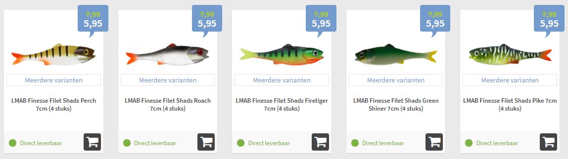 Een andere uitbreiding in het roofvispakket zijn de shads van LMAB. Ook geen hele bekende naam, maar dat is onterecht! De shads van LMAB zijn echt bijzonder te noemen. Elk model heeft zijn eigen unieke eigenschappen en is hierdoor zeker dressuurdoorbrekend. Deze modellen hebben ze nog nooit langs zien zwemmen! Klik HIER.