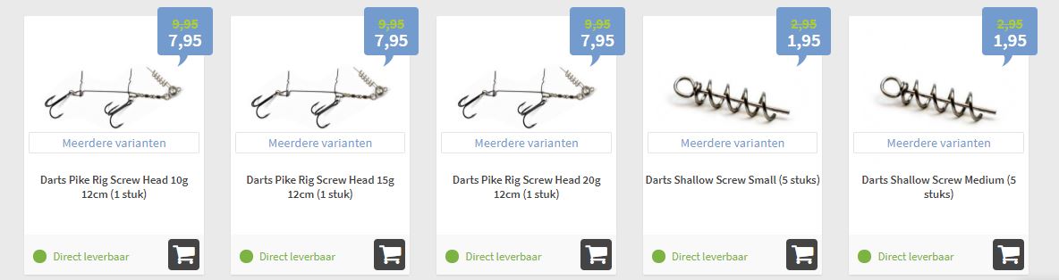 Allereerst wil de Visdealshop graag het merk Darts onder de aandacht brengen. Het Zweedse Darts is in Nederland nog niet heel bekend, maar het assortiment laat zien dat het een speler is om rekening mee te houden. De producten van hoge kwaliteit zijn geschikt voor de echte pro’s, maar de prijzen zijn zeer schappelijk. Denk aan haken, ratels, stingers en natuurlijk een groot kunstaaspakket! Je vind het hele assortiment HIER.