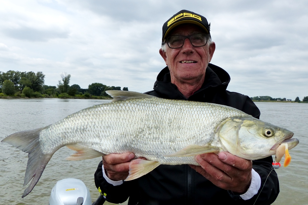 Na een stevige dril kunnen we de eerste roofblei landen. Een mooi fors exemplaar die onze visdag direct een ander aanzien geeft. Ik ben er mee in mijn nopjes. Niets speciale hengel, maar gewoon werpen met de verticaal hengel en snel binnen vissen. Het werkt.