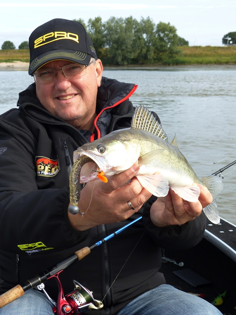 Zo af en toe tikt Luus vast op een snoekbaars. Geen grote vandaag, maar dat doet er niet toe. We weten ze te vinden en dus zitten we goed. Geduld is overigens wel geboden, want ze springen niet in de boot. We weten er uiteindelijk zeven te vangen en dat is dan vooral de verdienste van Luus.