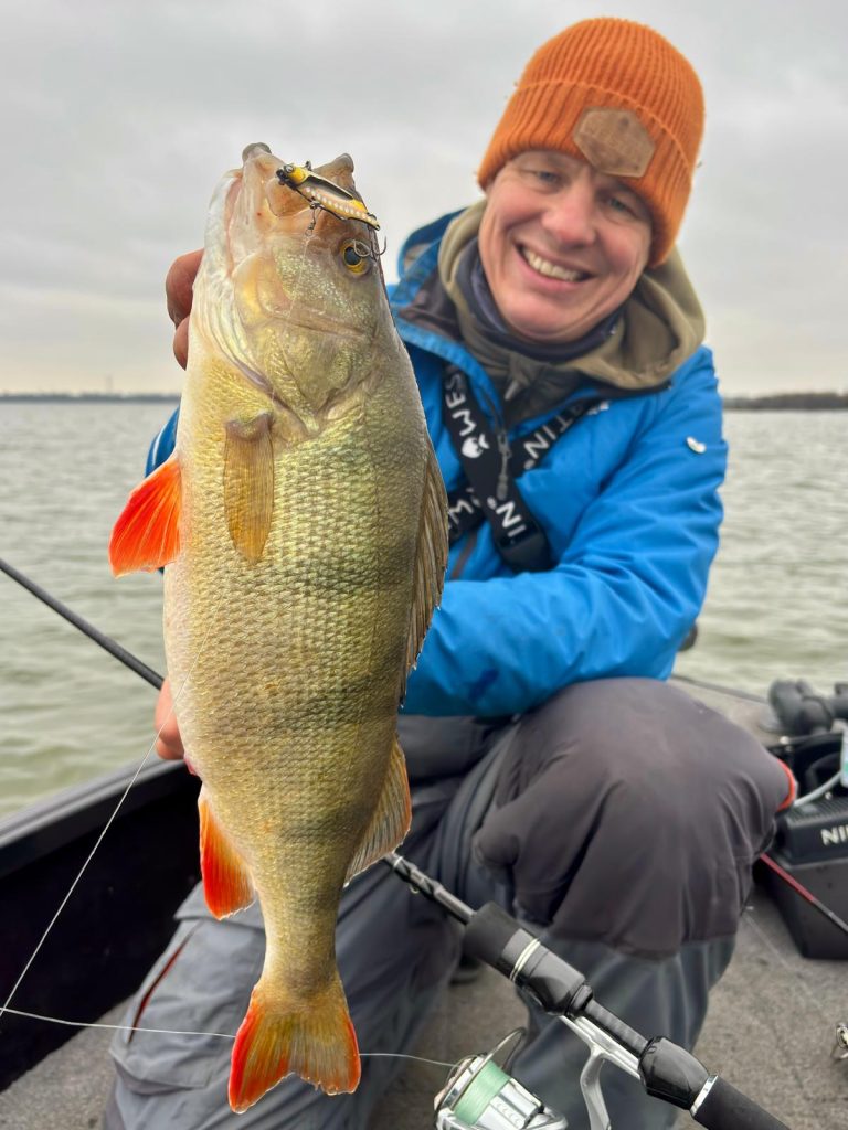 Laat me je meenemen naar een koude decemberdag. Het water was slechts 5 °C, de lucht grijs, en de rivierstroming leek stil te staan. Ik wist dat er baars op de stek moest zitten, maar na een klein uurtje te vissen met Carolina rig, Ned rig en shads had ik nog geen enkele tik gevoeld. “Wat nu proberen?” Dacht ik bij mezelf. Toen kwam er een moment van out-of-the-box denken. In mijn doos lag de Westin Ricky the Roach tungsten vibration bait van 9 gram. Normaal gebruik ik blades vooral in de zomer, maar waarom niet nu? Het werkte al heel de herfst goed! Ik knoopte hem aan, wierp richting de stek en ik begon hem traag binnen te vissen. Lage snelheid, lichte opwaartse halen en goed voelbare vibratie.