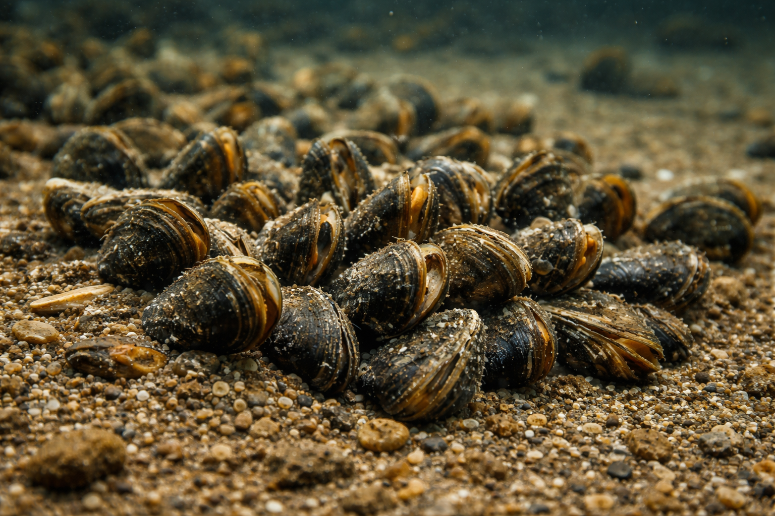 Mosseltjes, een bron voor klein voedsel en een magneet voor baars!